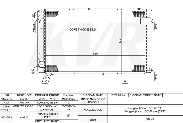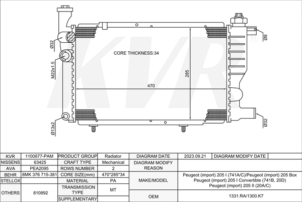 PEUGEOT SALOON,1979-95 XN1 RADIATOR