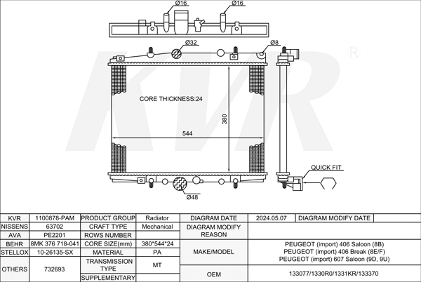 PEUGEOT SALOON,1995-2005 RHY (DW10TD) RADIATOR