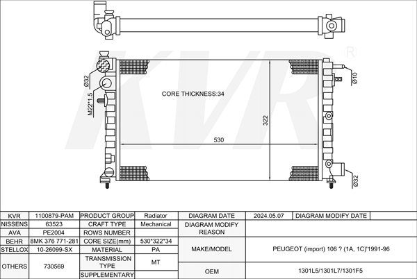 PEUGEOT HATCHBACK,1991-96 K9Y (TUD3Y) RADIATOR