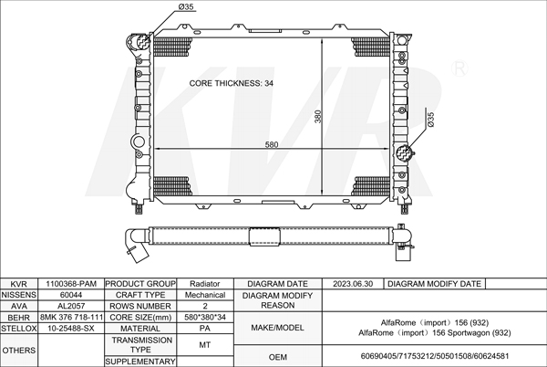 ALFA-ROMEO SALOON,1997-2005 AR 32501 RADIATOR