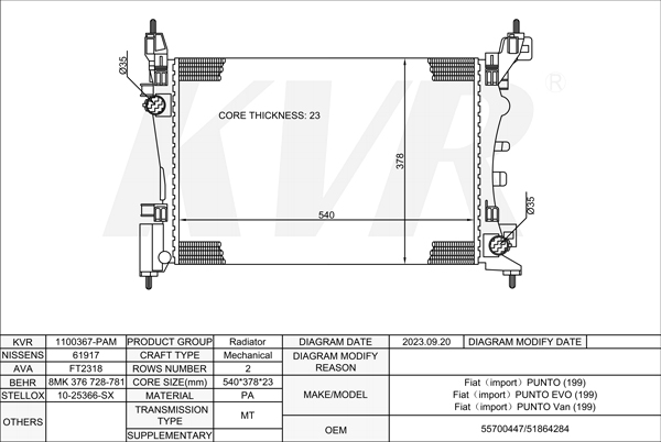 - APPLICATION:Fiat PUNTO (199)'2012-/Fiat PUNTO EVO (199)'2008-