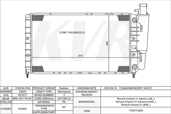 - APPLICATION:Renault 21 Saloon (L48_)'1986-97/21 (B48_)'1989-94