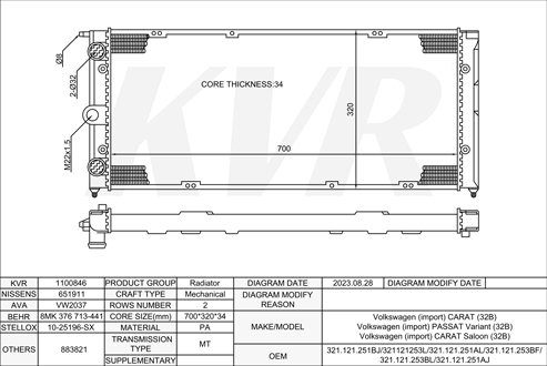 VOLKSWAGEN HATCHBACK,1979-89 DZ RADIATOR