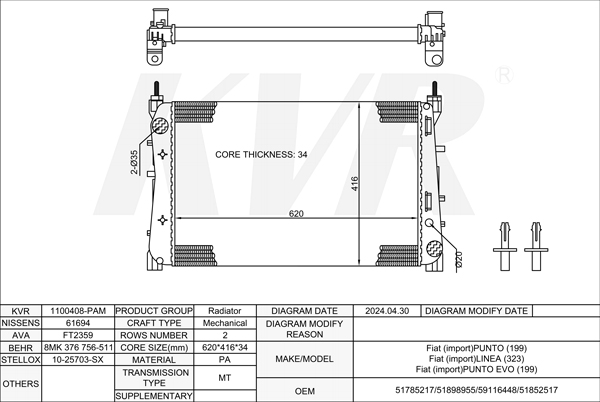 - APPLICATION:Fiat PUNTO (199)'2005-/PUNTO EVO (199)'2008-