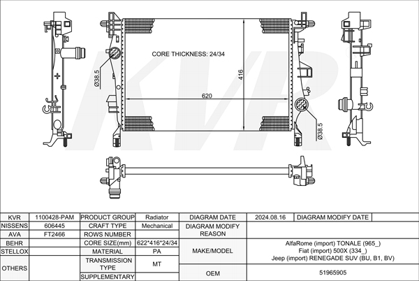 FIAT ESTATE,2016- 940 B7.000 RADIATOR