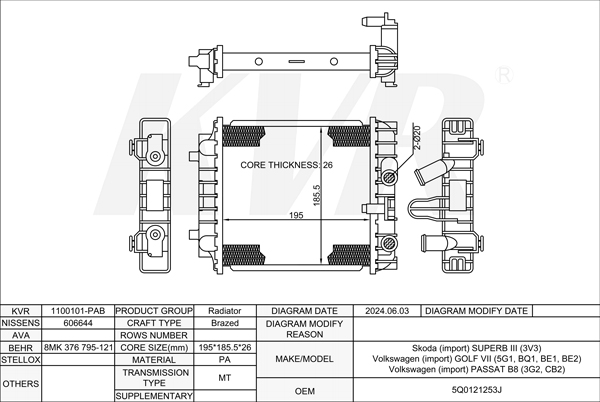 VOLKSWAGEN HATCHBACK,2013-20 DKTB RADIATOR