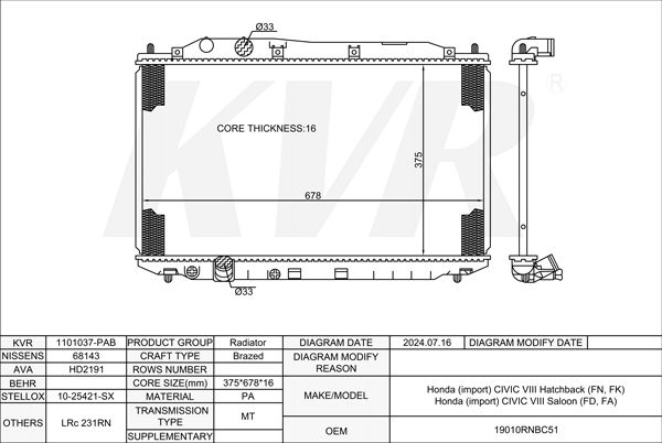 HONDA SALOON,2005- LDA2 RADIATOR