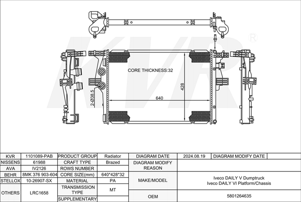 IVECO Platform/Chassis,2011-14 F1AE3481A RADIATOR
