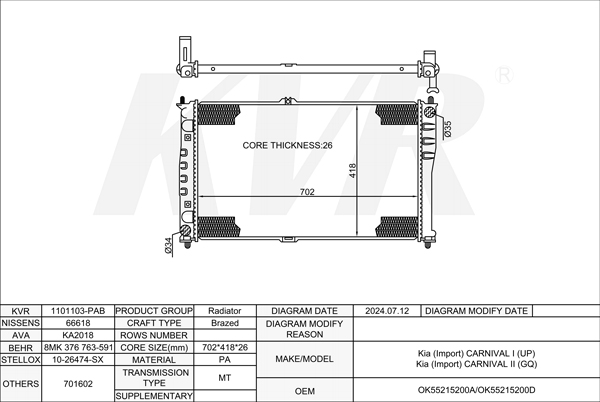 - Core size(mm)Brazed:702*418*26