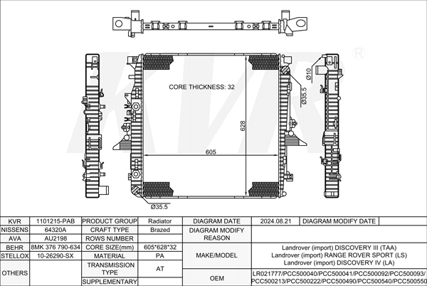 LAND ROVER Closed Off-Road Vehicle,2004-09 448PN RADIATOR