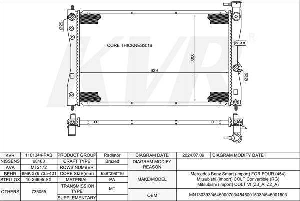 - Core size(mm)Brazed:639*398*16