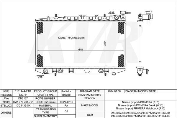 NISSAN SALOON,1990-96 SR20DE RADIATOR