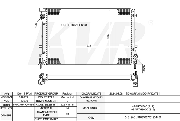ABARTH HATCHBACK,2008- 312 A3.000 RADIATOR