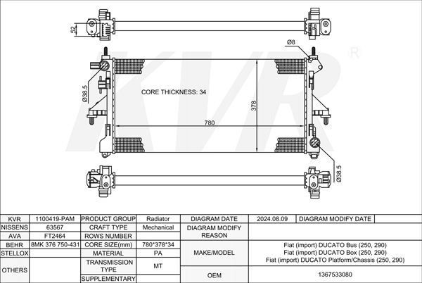 FIAT VAN,2006- F1CE3481N RADIATOR