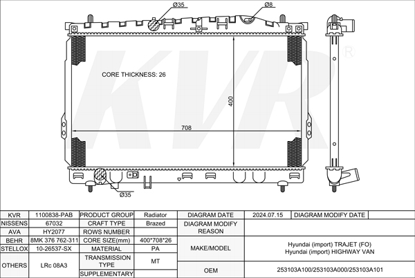 HYUNDAI ESTATE,2011- G4NC RADIATOR
