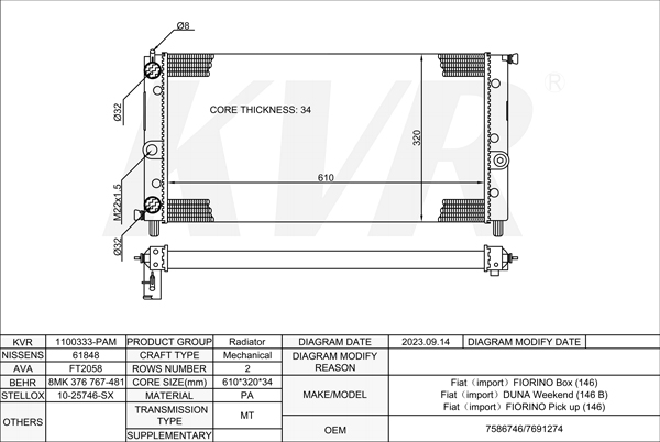 FIAT SALOON,1990-98 159 A6.046 RADIATOR