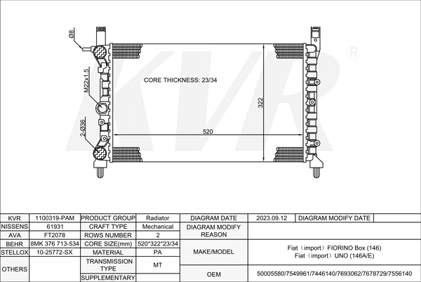 FIAT SALOON,1990-98 835 C1.000 RADIATOR