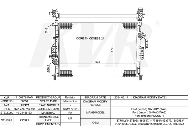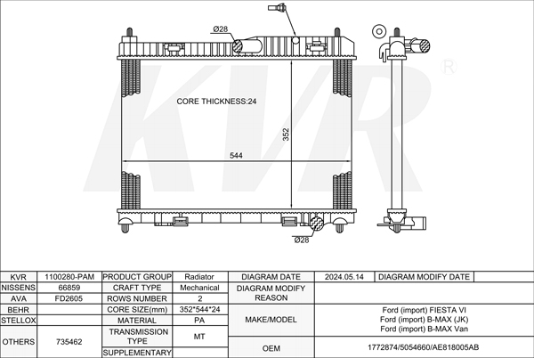 FORD HATCHBACK,2012-17 M1DA RADIATOR
