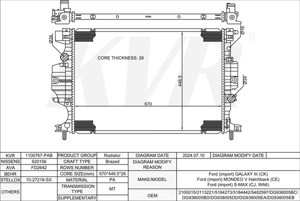 FORD MPV,2015- R9CD RADIATOR