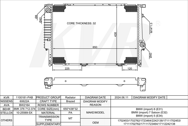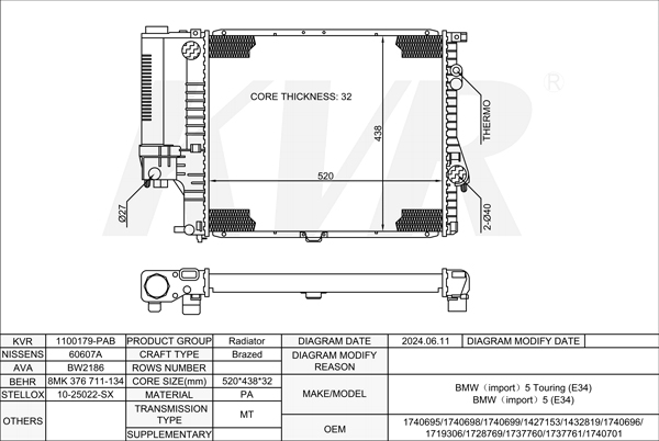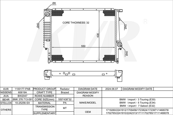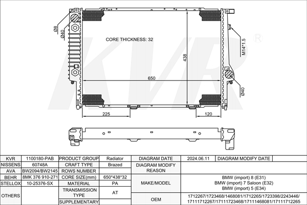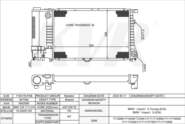 BMW ESTATE,1991-97 M60 B30 (308S1) RADIATOR